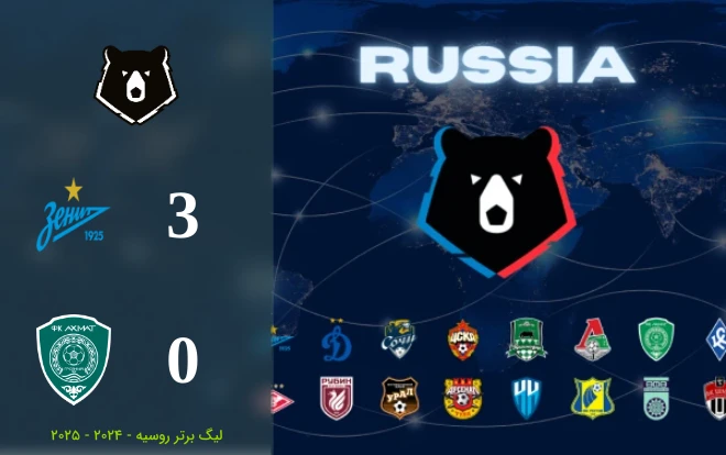 ویدیو خلاصه بازی زنیت 3 - 0 احمد گروژنی در مسابقات لیگ برتر روسیه فصل ۲۰۲۴ - ۲۰۲۵ - 03 خرداد 1404