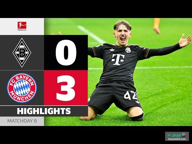 ویدیو خلاصه بازی مونشن گلادباخ 0 - 3 بایرن مونیخ در مسابقات بوندسلیگا آلمان فصل 2025-2026 - 03 آبان 1404