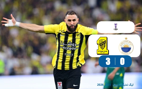 ویدیو خلاصه بازی الاتحاد مقابل شارجه امارات در هفته ۴ لیگ نخبگان غرب آسیا فصل 2025-2026 - 13 آبان 1404 که با درخشش بنزما و برتری ۳ بر ۰ الاتحاد به پایان رسید.
