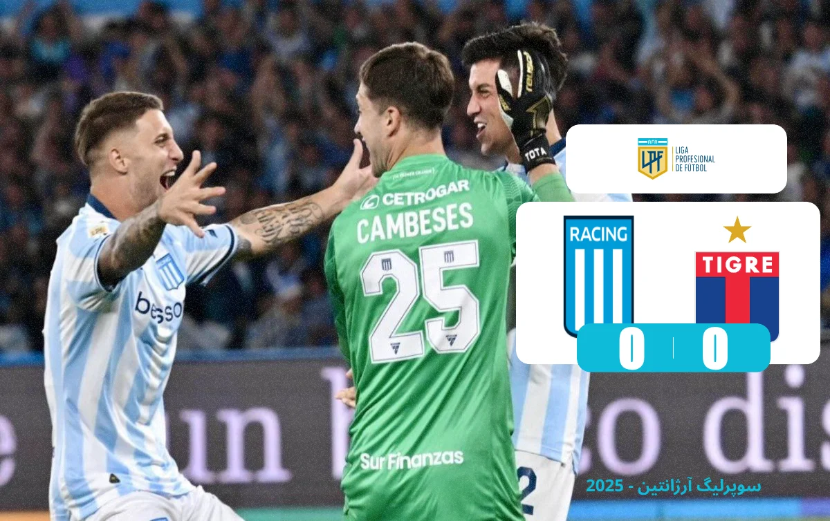 ویدیو خلاصه بازی ریسينگ کلاب مقابل اتلتیکو تایگر از مرحله ۱/۴ نهایی سوپرلیگ آرژانتین 2025 که ریسینگ موفق شد در یک دیدار پرتنش که ۳ اخراجی در پی داشت در نهایت پس از تساوی بدون گل در وقت‌های قانونی، ۴ بر ۲ در ضربات پنالتی به پیروزی برسد.
